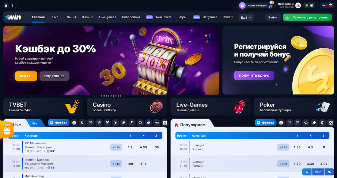 Раздел казино 1 вин привлекает игроков широким выбором развлечений, удобной навигацией и интуитивным интерфейсом. Дизайн платформы тщательно продуман – в верхней части размещены баннеры с актуальными бонусами и акциями, что позволяет пользователям быстро находить новые предложения и выгодные промокоды.